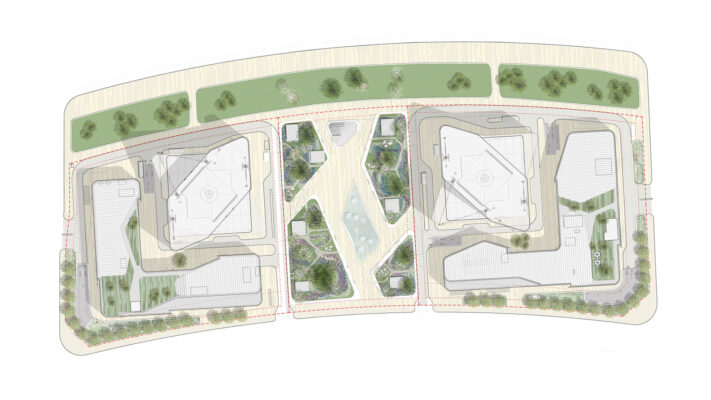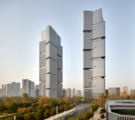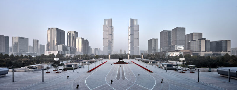 អគារថ្មីដោយ gmp បិទអ័ក្សរចនាទីក្រុងទៅខាងលិចដែលជាអ័ក្សដែលនាំពីស្ថានីយ៍រថភ្លើងថ្មីឆ្ពោះទៅកណ្តាលទីក្រុង។ ដូចជាទ្វារចូលទីក្រុង អគារខ្ពស់ៗបង្កើតបានជាទីតាំងបញ្ឈរទៅនឹងអគារផ្ដេកនៃស្ថានីយ៍រថភ្លើង។ ផ្លាហ្សារវាងប៉មបង្កើតជាធាតុតភ្ជាប់។ ដោយសារកម្ពស់ 284 ម៉ែត្រ ប៉មភ្លោះគឺខ្ពស់ជាងអគារខ្ពស់ៗផ្សេងទៀតនៅក្នុងតំបន់ជុំវិញ ហើយដូចជាអគារដែលបង្កើតអត្តសញ្ញាណនៅលើមេឃនៃ ទីក្រុង Zhengzhou អាចមើលឃើញពីចម្ងាយ។