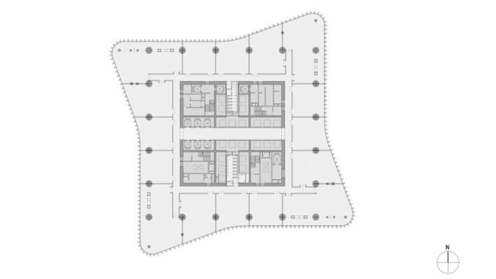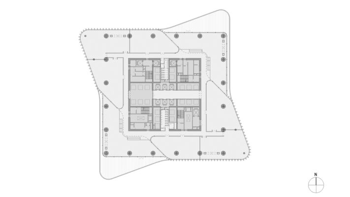 នៅក្នុងផែនការ ប្លង់នៃប៉មត្រូវបានរៀបចំអុហ្វសិតតាមម៉ូដម៉ាស៊ីនខ្យល់ជុំវិញស្នូលការ៉េនៃអាគារ។ ការិយាល័យទាំងអស់ទទួលបានអត្ថប្រយោជន៍ពីខ្យល់ធម្មជាតិតាមរយៈការបើកលាក់នៅក្នុងទម្រង់ facade ។ ជាមួយនឹងកន្លែងទទួលភ្ញៀវនៅលើមេឃនៅគ្រប់ជាន់ទីប្រាំបី ប៉មការិយាល័យមានកន្លែងដ៏មានកិត្យានុភាពនៅក្នុងទីតាំងបញ្ឈរ ដែលអាចប្រើបានតាមវិធីផ្សេងៗគ្នាជាច្រើនដោយក្រុមហ៊ុនក្នុងស្រុក។ លក្ខណៈពិសេសមិនធម្មតាមួយនៅក្នុងអគារខ្ពស់ដែលមានទំហំនេះគឺថាបុគ្គលិកត្រូវបានផ្តល់ឱកាសឱ្យប្រើប្រាស់ផ្ទៃរាបស្មើខាងក្រៅនៅកម្រិតខ្ពស់ ហើយពីទីនេះដើម្បីរីករាយនឹងទិដ្ឋភាពនៅទូទាំងទីក្រុង Zhengzhou ។